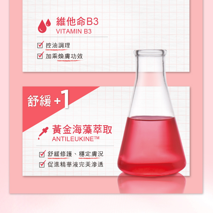 ◎維他命B3,控油調理,加乘煥膚功效