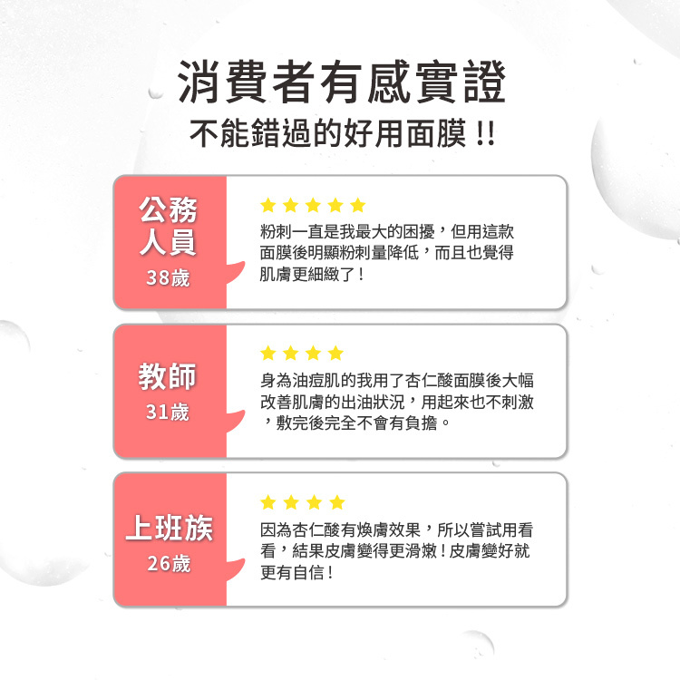 ◎杏仁酸,細緻膚觸,重現肌膚亮白光采