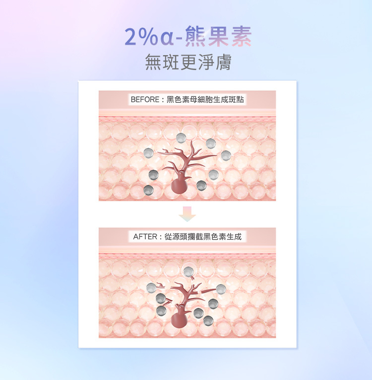 ◎2%α-熊果素,針對深層斑點,肌膚完美無跡