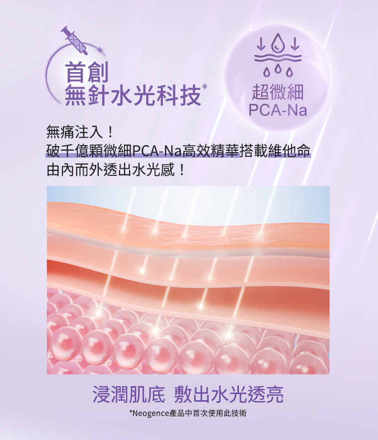◎破千億顆超微細PCA-Na浸潤肌底,水光透亮