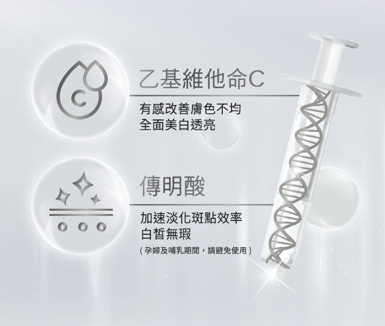 ◎傳明酸,加速淡化斑點效率,白皙無瑕