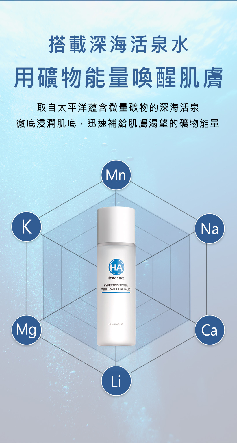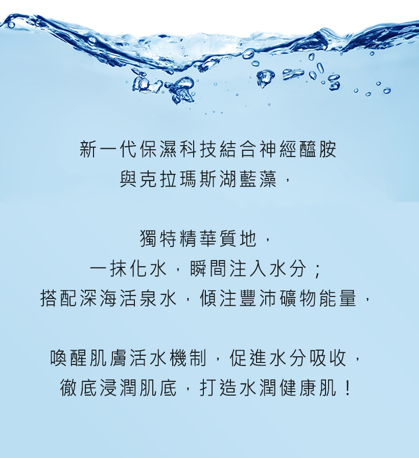 ◎ 深海活泉水豐富礦物能量喚醒肌膚活水機制,促進吸收,有效調理膚況