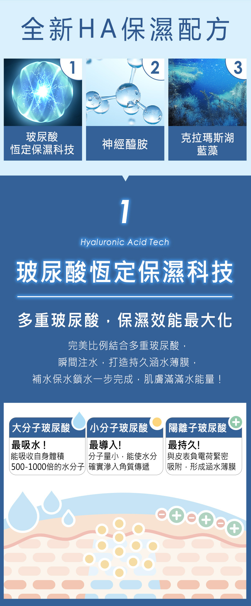 ◎ 新一代玻尿酸恆定保濕科技,瞬間注水,打造持久涵水薄膜,肌膚飽水一整天!