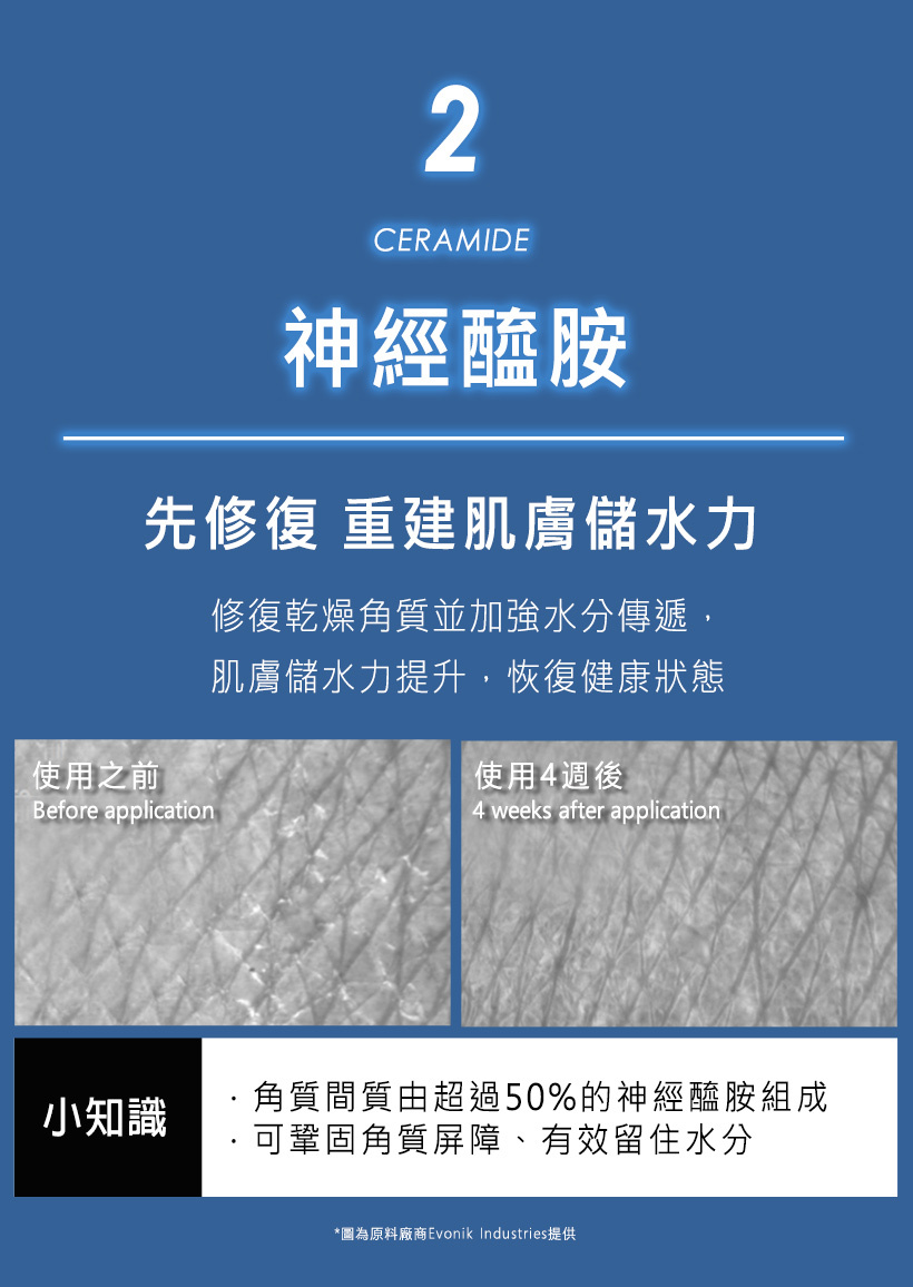 ◎ 神經醯胺密集修復乾燥角質,強化肌膚儲水力
