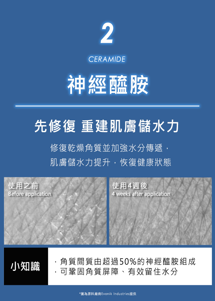 ◎ 神經醯胺密集修復乾燥角質,強化肌膚儲水力
