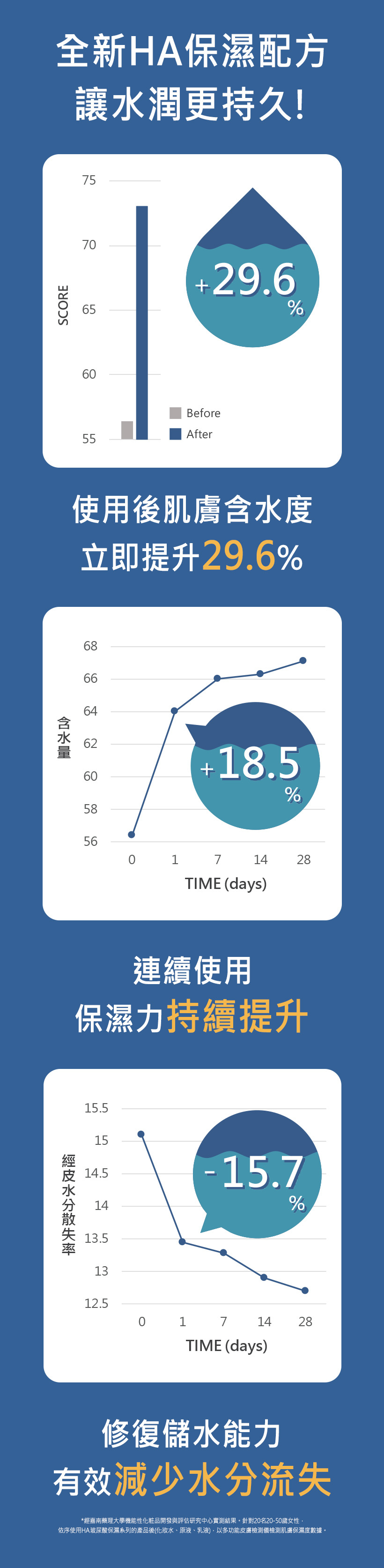 ◎ 新一代玻尿酸恆定保濕科技,瞬間注水,打造持久涵水薄膜,肌膚飽水一整天!