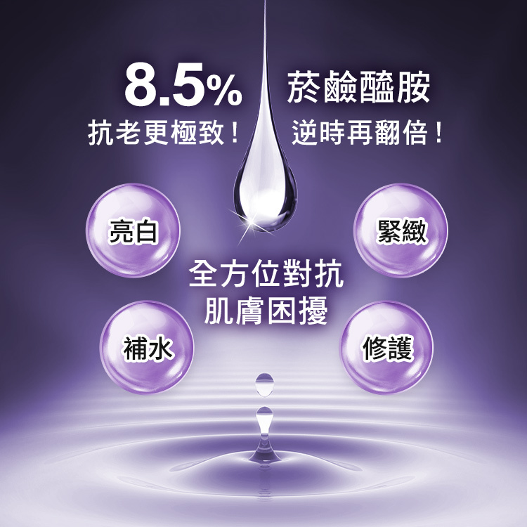 ◎8.5%菸鹼醯胺,抗老更極致,逆時再翻倍